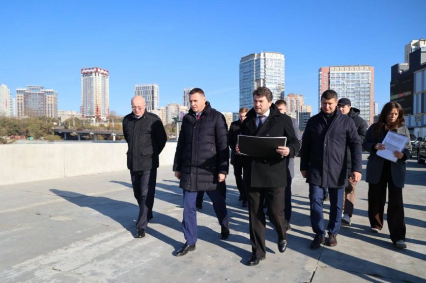 25 октября, АВРОРА⭕МЕДИА. Губернатор Дмитрий Демешин провел выездное совещание с министрами, главным архитектором края по проекту благоустройства дамбы Южного округа.
