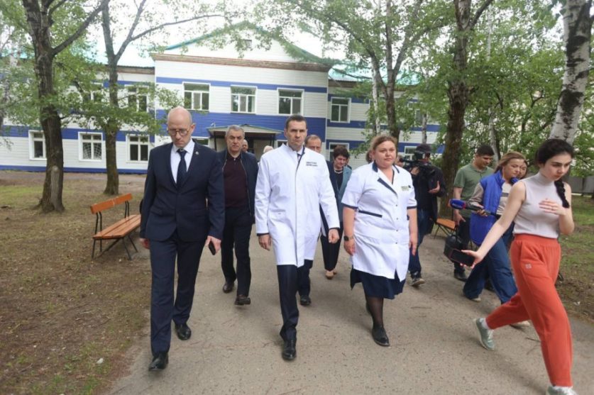 В ходе поездки Демешин посетил Троицкую районную больницу, которая обслуживает более 13,8 тысяч жителей. Глава региона отметил значительные улучшения, проведённые по программе модернизации первичного звена здравоохранения, но также обратил внимание на нехватку медицинских работников и необходимость объединения всех отделений под одной крышей для улучшения работы учреждения.