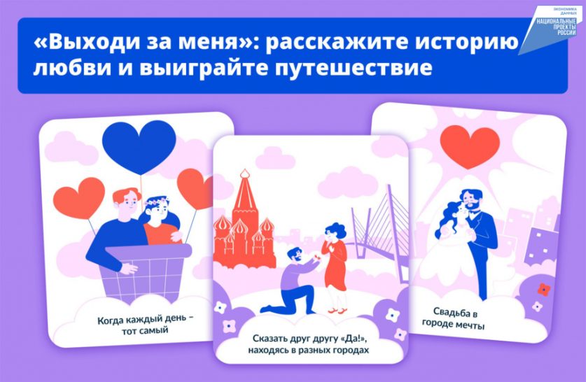 Чтобы принять участие, нужно разместить на своей открытой странице «ВКонтакте» текстовый пост с историей и, при желании, фото или видео. Обязательные условия — указать хэштеги #ВыходиЗаМеня и #Госуслуги и подписаться на сообщество Госуслуг. Победителей определит жюри, главный приз — романтическая поездка на двоих по России. Лучшие публикации будут размещены на официальном сайте проекта выходизаменя.рф, где также доступна подробная информация об условиях участия.