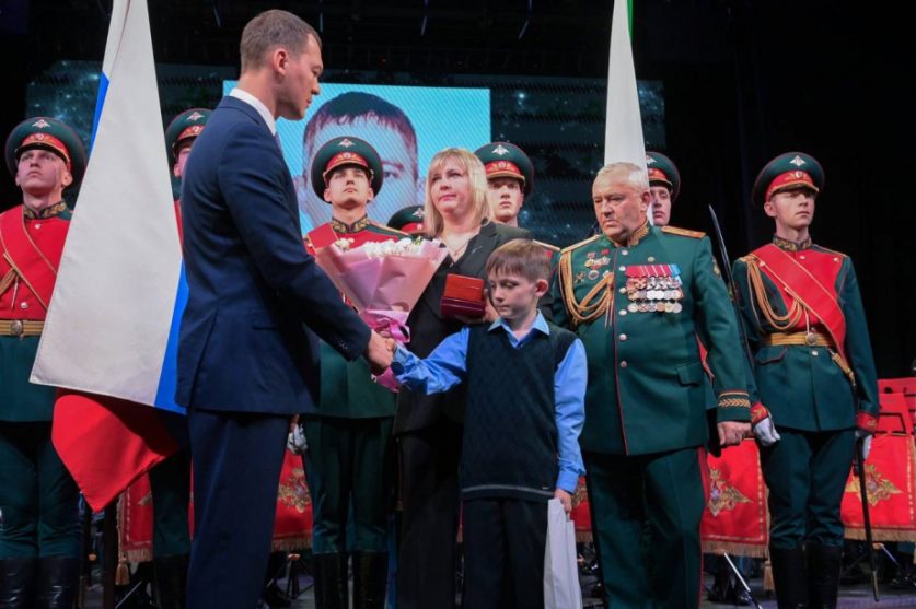 Далее губернатор и врио командующего войсками ВВО лично наградили военнослужащих, отличившихся при выполнении боевых задач. Некоторые знаки отличия, присвоенные защитникам посмертно, были вручены их родным. Среди них — родные и близкие погибших при исполнении воинского долга Героя России старшего лейтенанта — заместителя командира по военно-политической работе мотострелковой роты 60-й мотострелковой бригады Романа Андреевича Блинова и отмеченного медалью Жукова старшего прапорщика — заместителя командира группы 14-ой отдельной бригады специального назначения Виталия Владимировича Михалина.