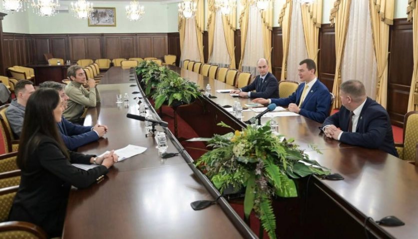 14 апреля, АВРОРА⭕МЕДИА. Сегодня губернатор Михаил Дегтярев встретился со съемочной группой фильма «Золото Умальты». Глава региона и режиссер Андрей Богатырев, директор киностудии «Лендок» Алексей Тельнов, продюсер ленты Елена Дементова и один из главных актеров Артем Ткаченко обсудили стартовавший съемочный процесс, а также перспективы развития проекта.