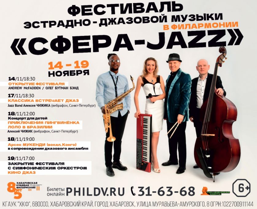 14 ноября, АВРОРА⭕МЕДИА. Четвертый фестиваль эстрадно-джазовой музыки «Сфера-джаз» пройдет с 14 по 19 ноября в Хабаровске. В этом году он обещает представить не только классические джазовые произведения, но и взрывной фанк, лиричный соул и латиноамериканский джаз. Концерты пройдут на сцене Хабаровской краевой филармонии.