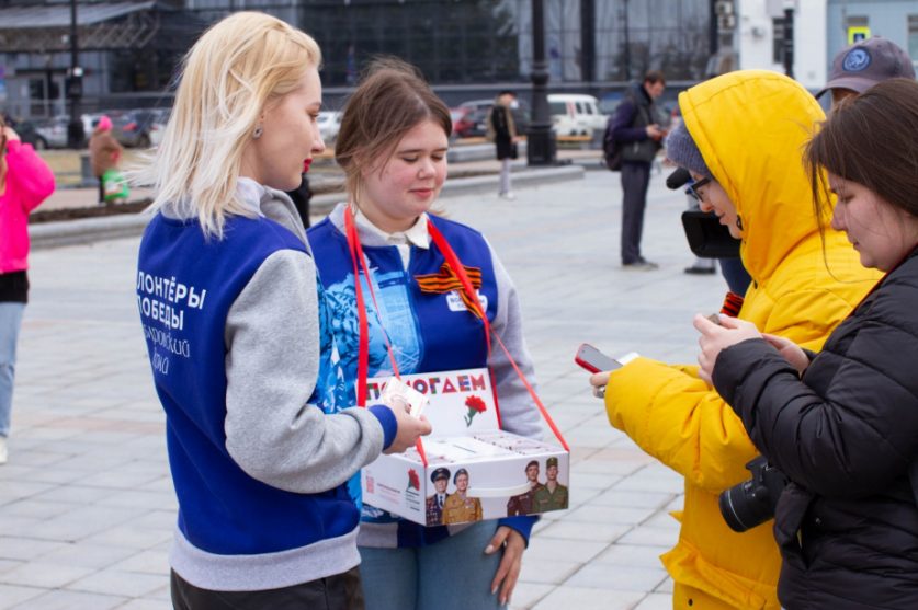 26 апреля, АВРОРА⭕МЕДИА. В этом году Хабаровский край уже в 18-ый раз присоединился к проведению Международной патриотической акции «Георгиевская ленточка», которая продлится до 9 мая. В крае акция стартовала с главной площади региона, где добровольцы Всероссийского общественного движения «Волонтеры Победы» раздавали горожанам георгиевские ленты, а также объяснили, как правильно их носить.